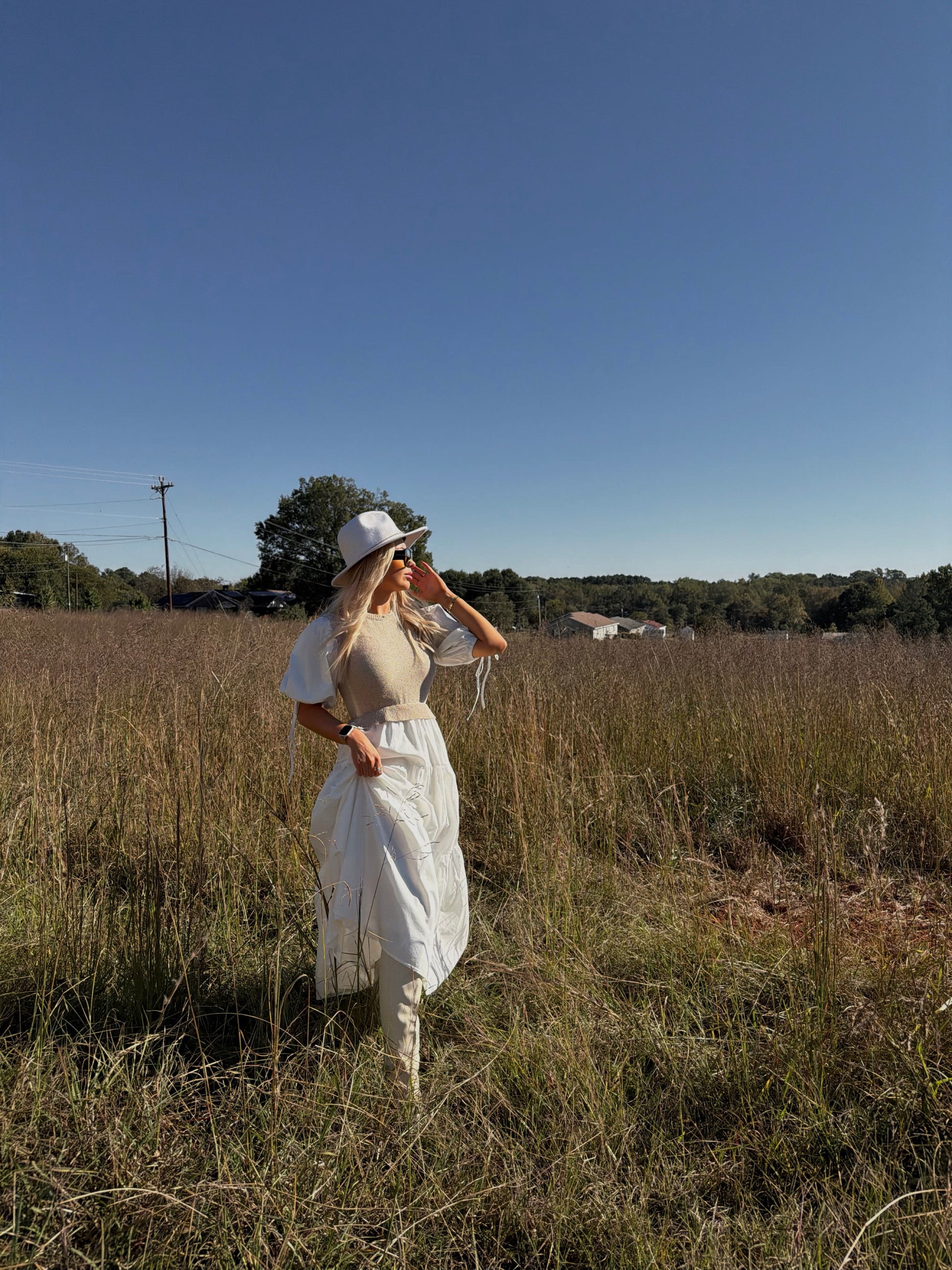 Step into the playful charm of autumn with the Ivory Meadow Midi Dress. Inspired by golden fields and soft, glowing light, this dress brings a lighthearted, breezy feel to your wardrobe. Its flattering midi length and gentle flow invite spontaneous twirls, making every moment feel like a sunny day in the meadow. The contrast of cozy and airy textures creates an effortlessly elegant silhouette - perfect. for countryside strolls and transitional fall gatherings